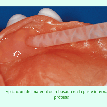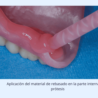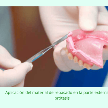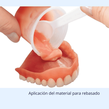 Rebase: Adición de material de rebase a la base de la prótesis en el laboratorio dental.