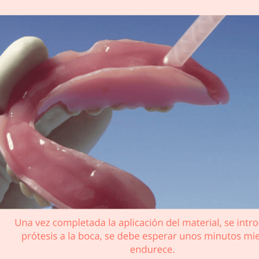 Instrumentos: Impresiones dentales, material de rebase, herramientas de ajuste.