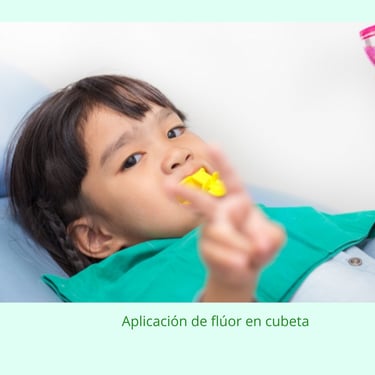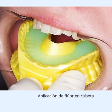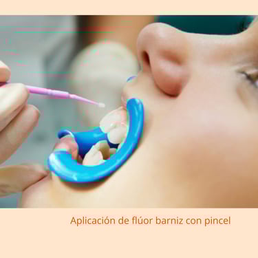 Aplicación de Flúor: Aplicación de gel, espuma o barniz de flúor sobre los dientes.