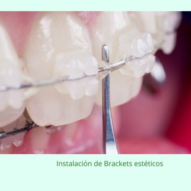 Instrumentos: Brackets de cerámica, alambres, ligaduras, adhesivo dental, luz de curado.