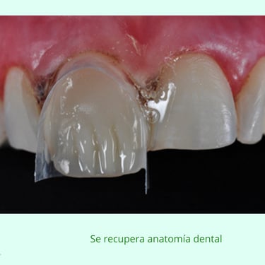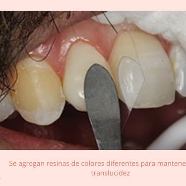 Aplicación del Material Compuesto: Se aplica el material compuesto en capas sobre la superficie del diente,
