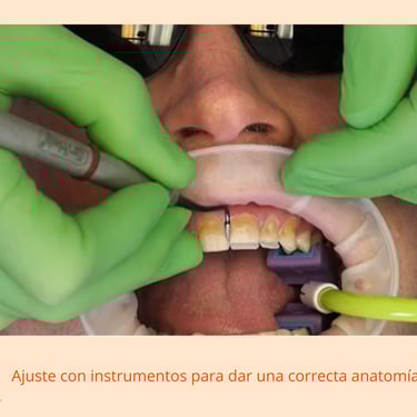 Modelado y Esculpido: El dentista modela y esculpe el material compuesto para darle la forma y el contorno deseados.