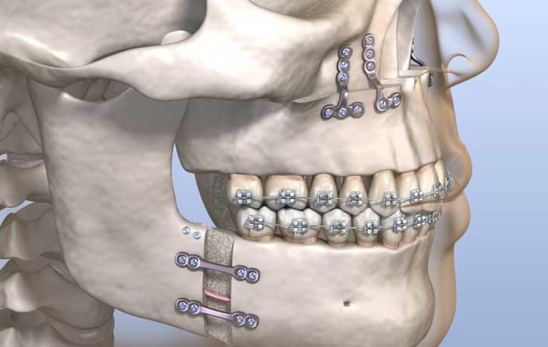 Es la corrección quirúrgica de deformidades de los maxilares para mejorar la función masticatoria, la apariencia facial y la salud dental. Incluye la realineación de la mandíbula y el maxilar para una mordida adecuada.