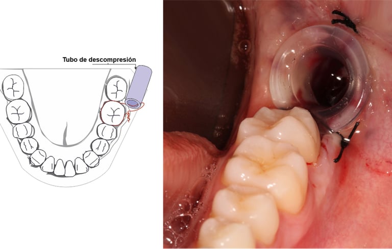 Es un procedimiento para reducir el tamaño de un quiste en la mandíbula o el maxilar, permitiendo su drenaje y disminuyendo la presión en las estructuras circundantes. Esto facilita un tratamiento posterior más sencillo.
