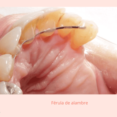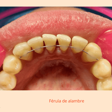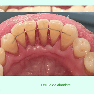 Procedimiento: Colocación de una férula que une varios dientes, proporcionando soporte y estabilidad.