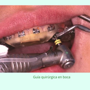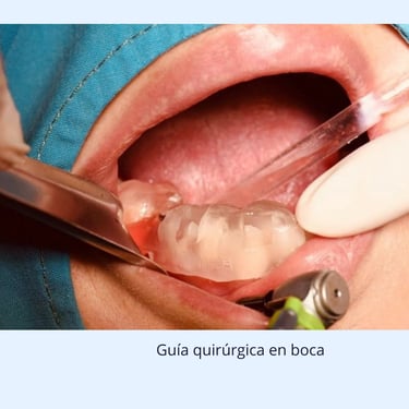 Colocación de la Guía Quirúrgica: La guía se coloca en la boca del paciente para guiar la inserción precisa del implante.