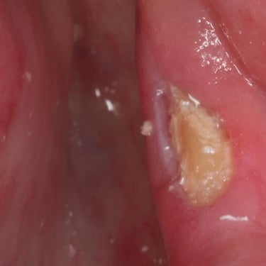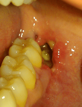 Los pacientes pueden notar dolor, hinchazón, dificultad para abrir la boca y, a veces, nariz sangrante.