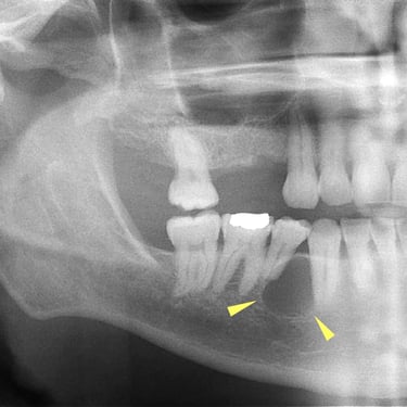 La osteonecrosis de los maxilares es la muerte del hueso mandibular o maxilar debido a una disminución del flujo sanguíneo, a menudo asociada con ciertos medicamentos o radioterapia.