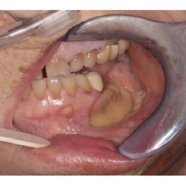 Los pacientes pueden notar un bulto o masa en la mandíbula o el maxilar.