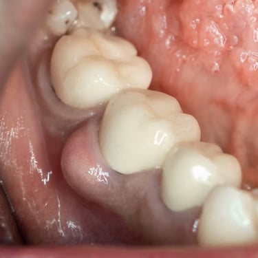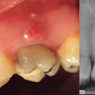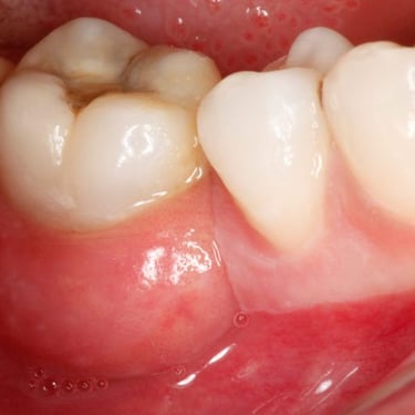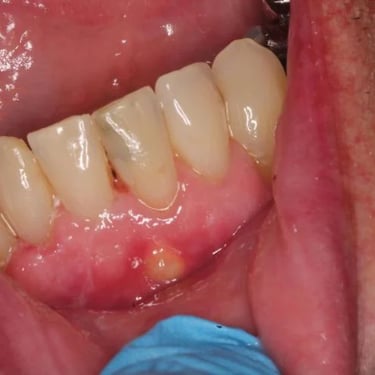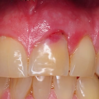 Los pacientes pueden sentir dolor y notar hinchazón en la encía.