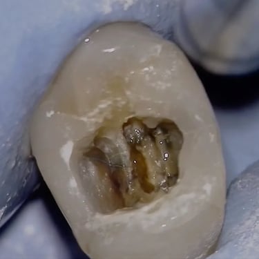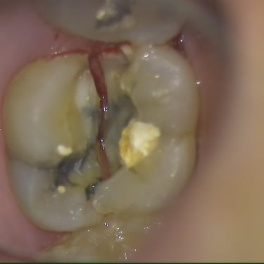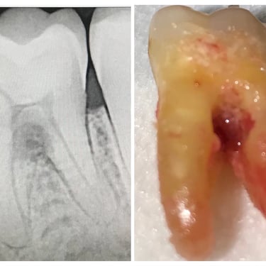 Una perforación radicular es una abertura anormal en la raíz del diente, generalmente debido a un procedimiento dental fallido o una caries profunda.