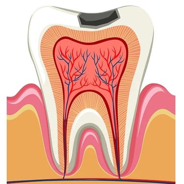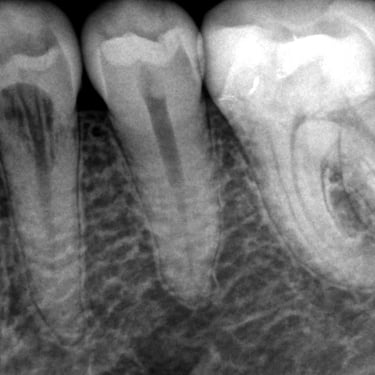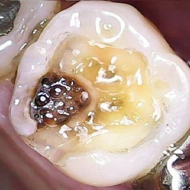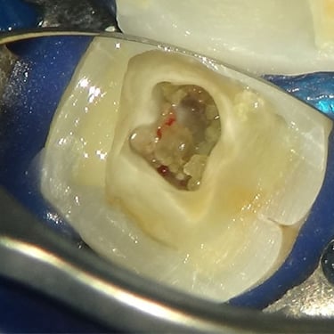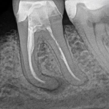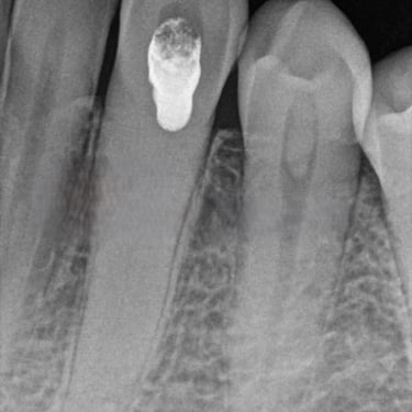 La calcificación pulpar es la formación de depósitos de calcio dentro de la pulpa dental, que puede dificultar el tratamiento de conducto.