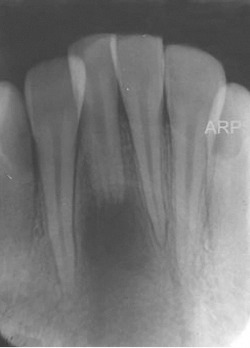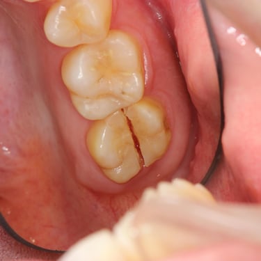 Una fractura radicular vertical es una fisura que se extiende a lo largo de la raíz del diente, a menudo causada por un trauma o una presión excesiva.