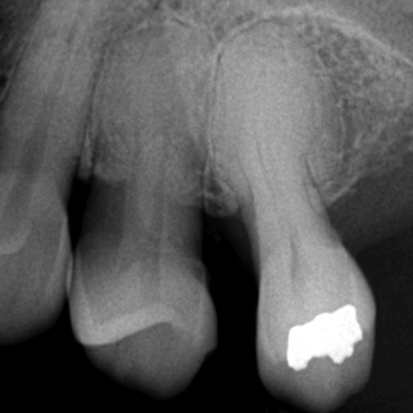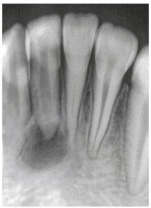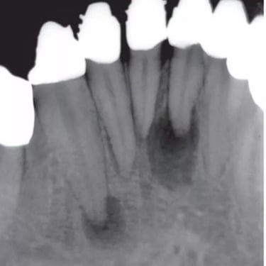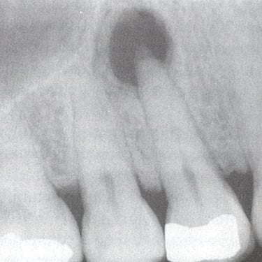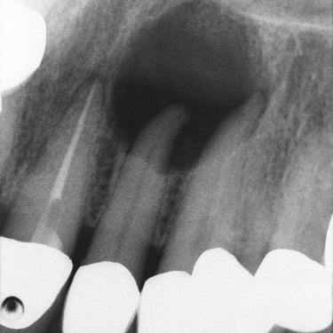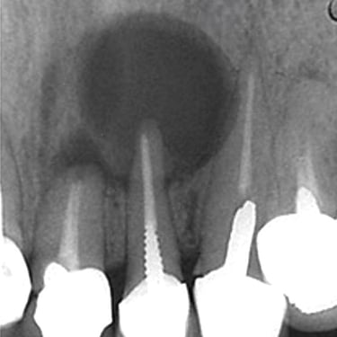 Un quiste periapical es una cavidad llena de líquido en la punta de la raíz del diente, generalmente resultado de una infección crónica.