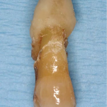 La hipercementosis es un engrosamiento anormal del cemento radicular del diente, a menudo debido a una inflamación crónica o trauma.