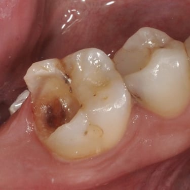 La caries radicular es la descomposición del cemento y la dentina en la raíz del diente, común en personas mayores con recesión gingival.