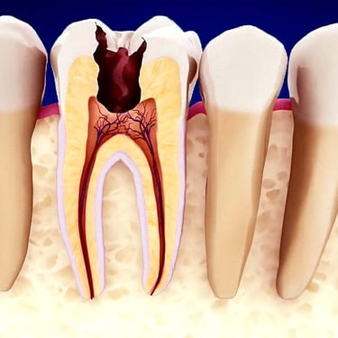 La necrosis pulpar es la muerte de la pulpa dental, generalmente como resultado de una pulpitis no tratada.