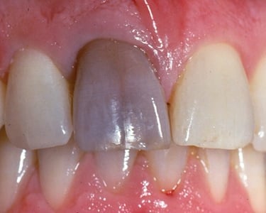 Los pacientes pueden no sentir dolor, pero el diente puede cambiar de color y presentar mal olor.