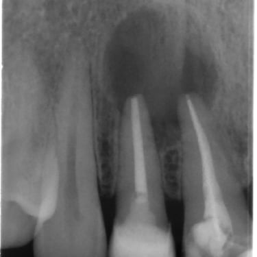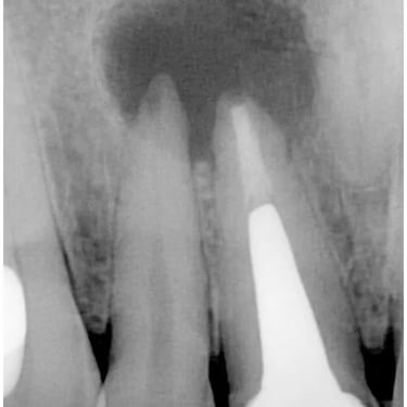 Un absceso periapical crónico es una infección prolongada en la punta de la raíz del diente que forma una bolsa de pus.