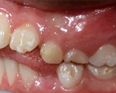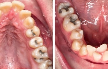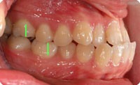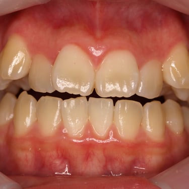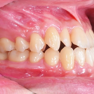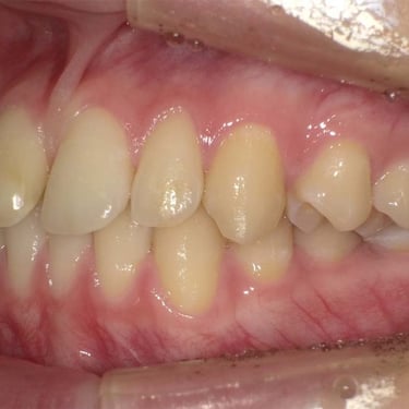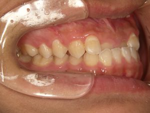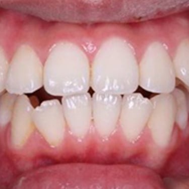Los pacientes pueden notar que algunos de sus dientes superiores se colocan detrás de los dientes inferiores al morder. Esta condición puede causar desgaste desigual de los dientes y problemas de mandíbula.