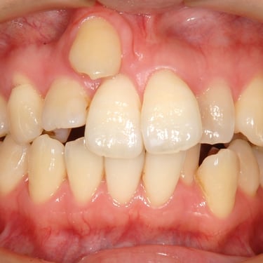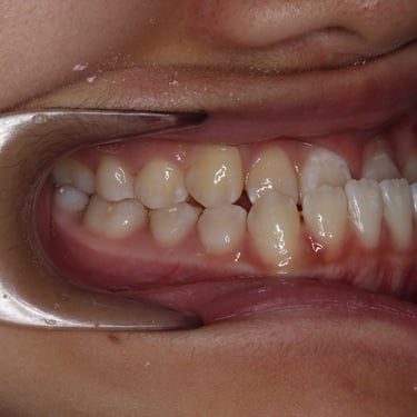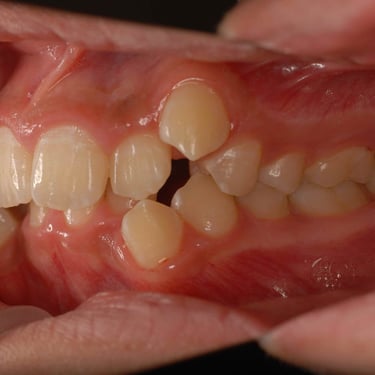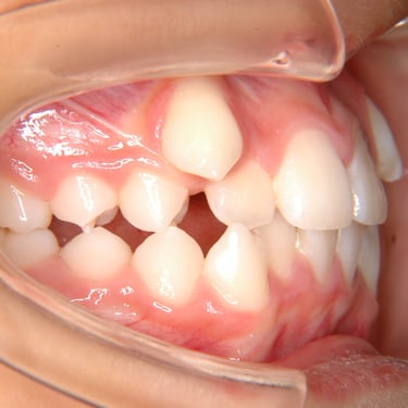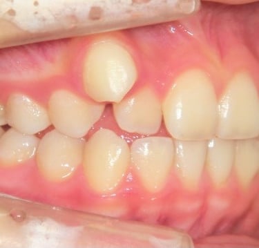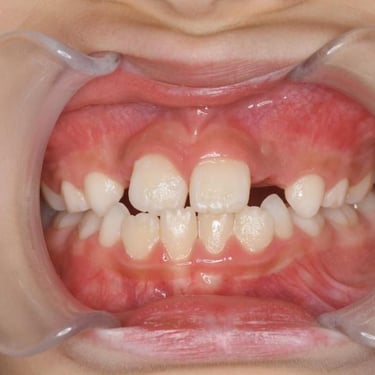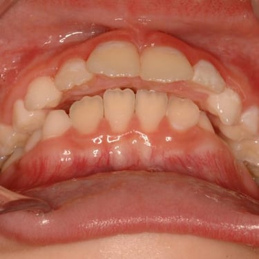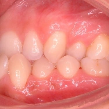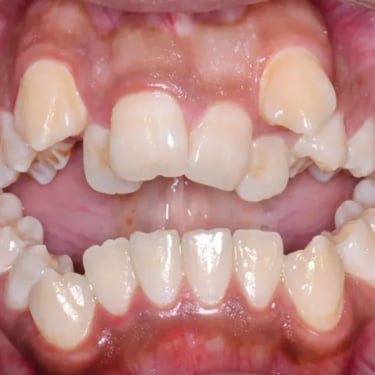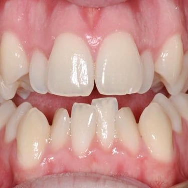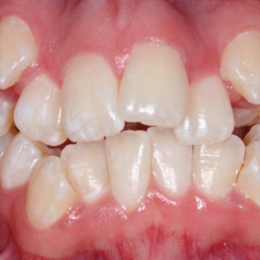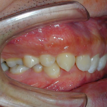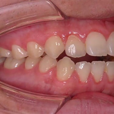 Este tipo de maloclusión puede causar problemas de mordida y estética, y el tratamiento puede incluir el uso de aparatos ortodónticos.