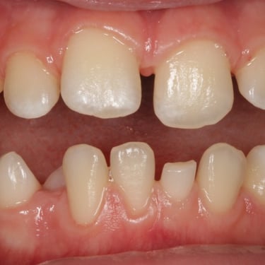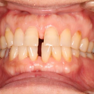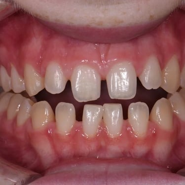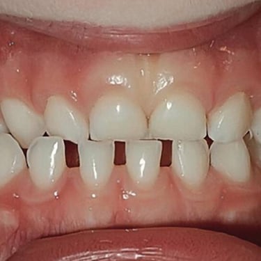 Los pacientes pueden notar un espacio visible entre sus dientes frontales. Esta condición puede ser causada por factores genéticos, hábitos como la succión del pulgar o un frenillo labial hipertrófico.