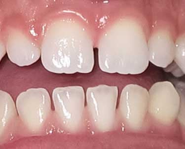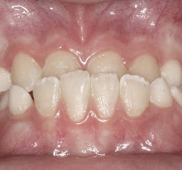 Los pacientes pueden notar que sus dientes frontales están inclinados hacia adentro.