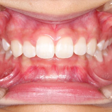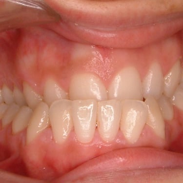 Los pacientes pueden notar que sus dientes superiores sobresalen significativamente sobre los inferiores.