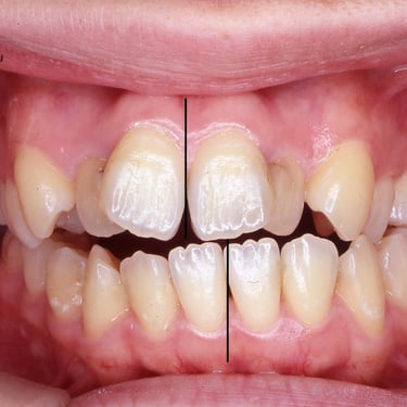 Los pacientes pueden notar que la línea central de sus dientes no está alineada con la línea central de su rostro. Esto puede ser estéticamente desagradable y afectar la mordida.
