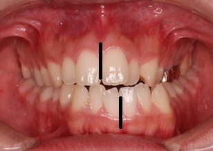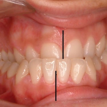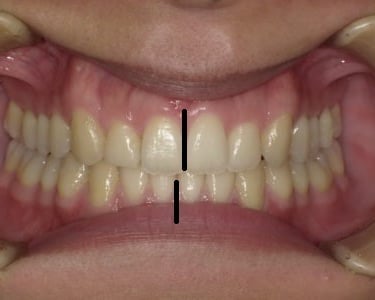 La desviación de la línea media es una desalineación de los dientes superiores e inferiores, donde la línea media dental no coincide con la línea media facial.