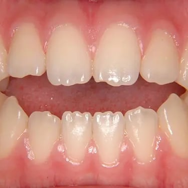 Los pacientes pueden notar que sus dientes superiores e inferiores chocan al morder. Esta condición puede causar desgaste dental y problemas en la articulación temporomandibular.