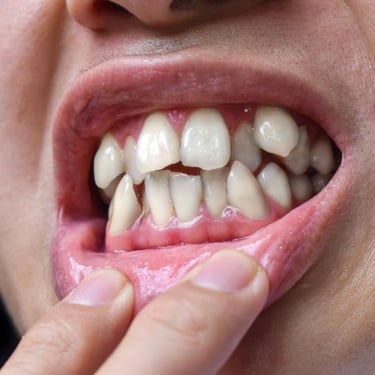 Los pacientes pueden notar que sus dientes se superponen y están torcidos. Esta condición puede dificultar la higiene oral y aumentar el riesgo de caries y enfermedades de las encías.