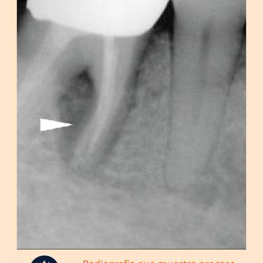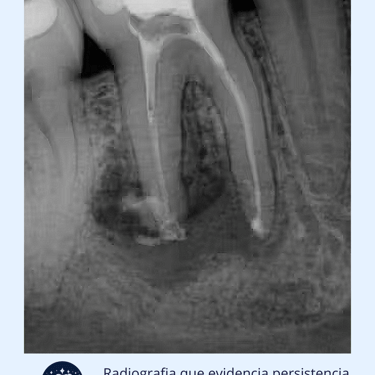 Resultados esperados: Si hay signos de fallo en el tratamiento previo, puede requerirse un retratamiento de conducto o, en casos más complicados, una apicectomía o extracción.