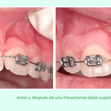 El especialista evalúa la posición y el tamaño del frenillo labial superior o inferior, que puede estar causando problemas estéticos o funcionales, como separación de dientes (diastema) o dificultad para hablar.
