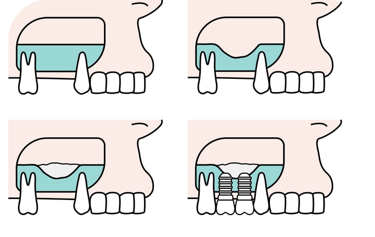 Es un procedimiento para añadir hueso a al maxilar superior en la zona de los molares y premolares, elevando el suelo del seno maxilar para permitir la colocación de implantes.