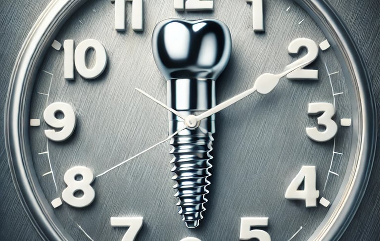 Se refiere a los periodos de cicatrización y osteointegración necesarios para asegurar el éxito del implante dental. Incluye tiempos específicos para la integración del implante al hueso y la colocación de las prótesis.