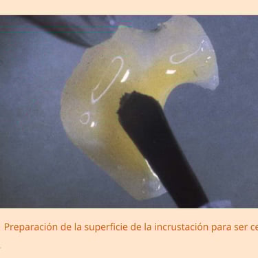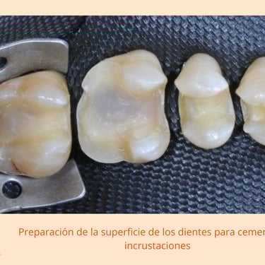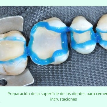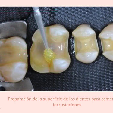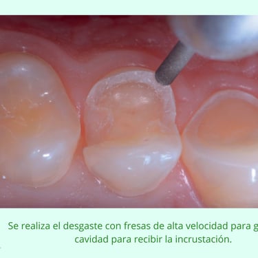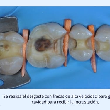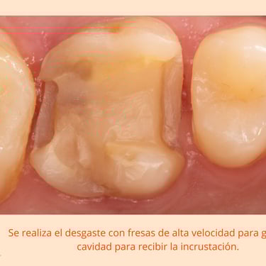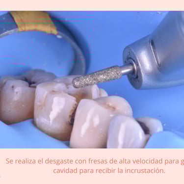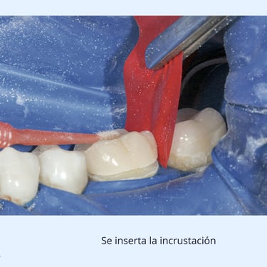 Preparación del Diente: Se elimina el tejido dental dañado y se prepara el diente para recibir la incrustación.