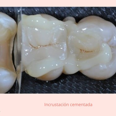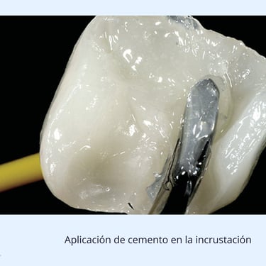 Colocación de la Incrustación Definitiva: En una segunda visita, se retira la restauración temporal y se adhiere la incrustación definitiva con un cemento dental especial.