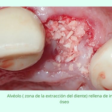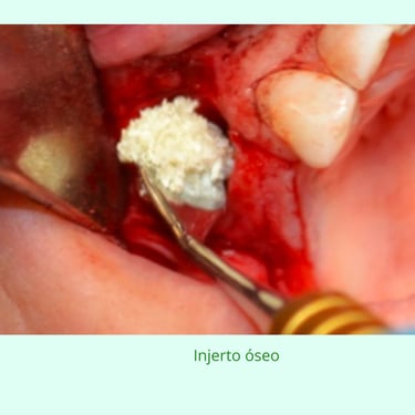 Colocación del Injerto Óseo: Se coloca el material de injerto óseo (que puede ser hueso autógeno, alógeno, xenógeno o sintético) en el área deficiente. Se puede usar una membrana para proteger y estabilizar el injerto.