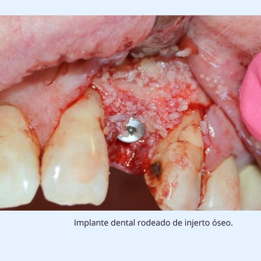 Importancia: Los injertos óseos son necesarios cuando no hay suficiente hueso en la mandíbula o el maxilar para soportar un implante dental. El injerto ayuda a reconstruir el hueso perdido, proporcionando una base sólida para el implante y mejorando las posibilidades de éxito a largo plazo.