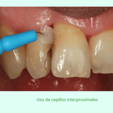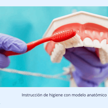 Procedimiento: El dentista muestra al paciente cómo cepillarse y usar el hilo dental correctamente, usando modelos dentales y demostraciones prácticas.