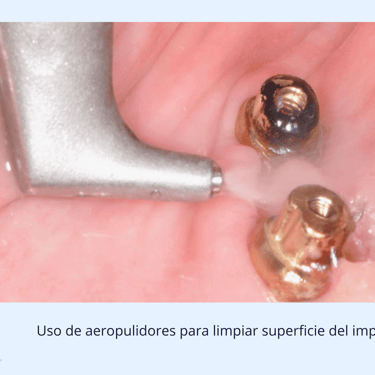 Instrumentos: Sonda periodontal, Curetas de titanio o plástico, Irrigadores de clorhexidina o antisépticos específicos, ultrasonidos con puntas diseñadas para implantes.