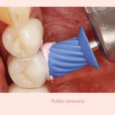 Limpieza Profesional: Eliminación de placa bacteriana y biofilm en la zona afectada utilizando instrumentos especiales para no dañar el implante.