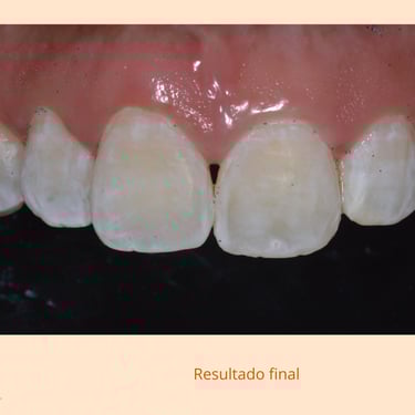 Resultados esperados: Eliminación de manchas superficiales y un tono de esmalte más uniforme, mejorando la estética del diente y logrando una apariencia más limpia y natural.