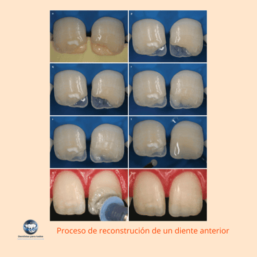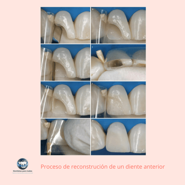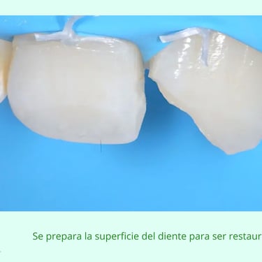 Limpieza y Preparación: Se limpia el área afectada y se prepara el diente para la reconstrucción.