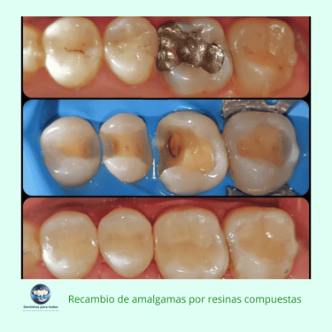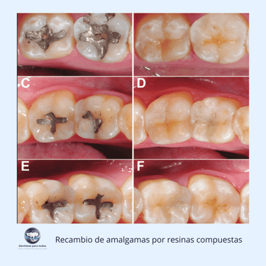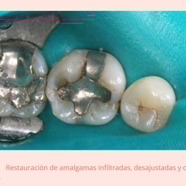 Se evalúa el estado de las amalgamas y el diente para considerar su reemplazo con resinas compuestas, mejorando la estética y eliminando el uso de metal.
