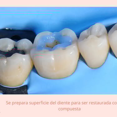 Preparación del Diente: Se prepara el diente para recibir la resina compuesta.