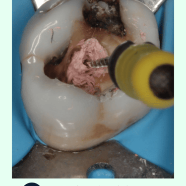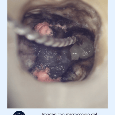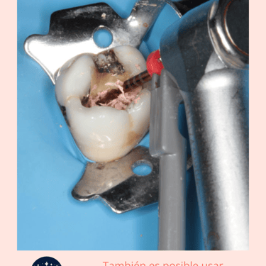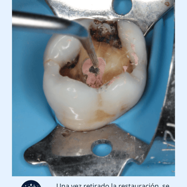 Acceso al Conducto: Se retira la restauración existente y se accede al conducto radicular.