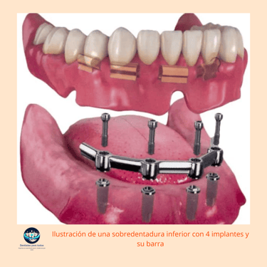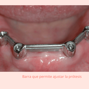 Barra de Retención: Una barra metálica conectada a los implantes. La sobredentadura se ajusta sobre esta barra mediante clips o mecanismos similares.