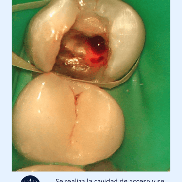 Acceso a la Pulpa: Se hace una apertura en la corona del diente para acceder a la cámara pulpar.